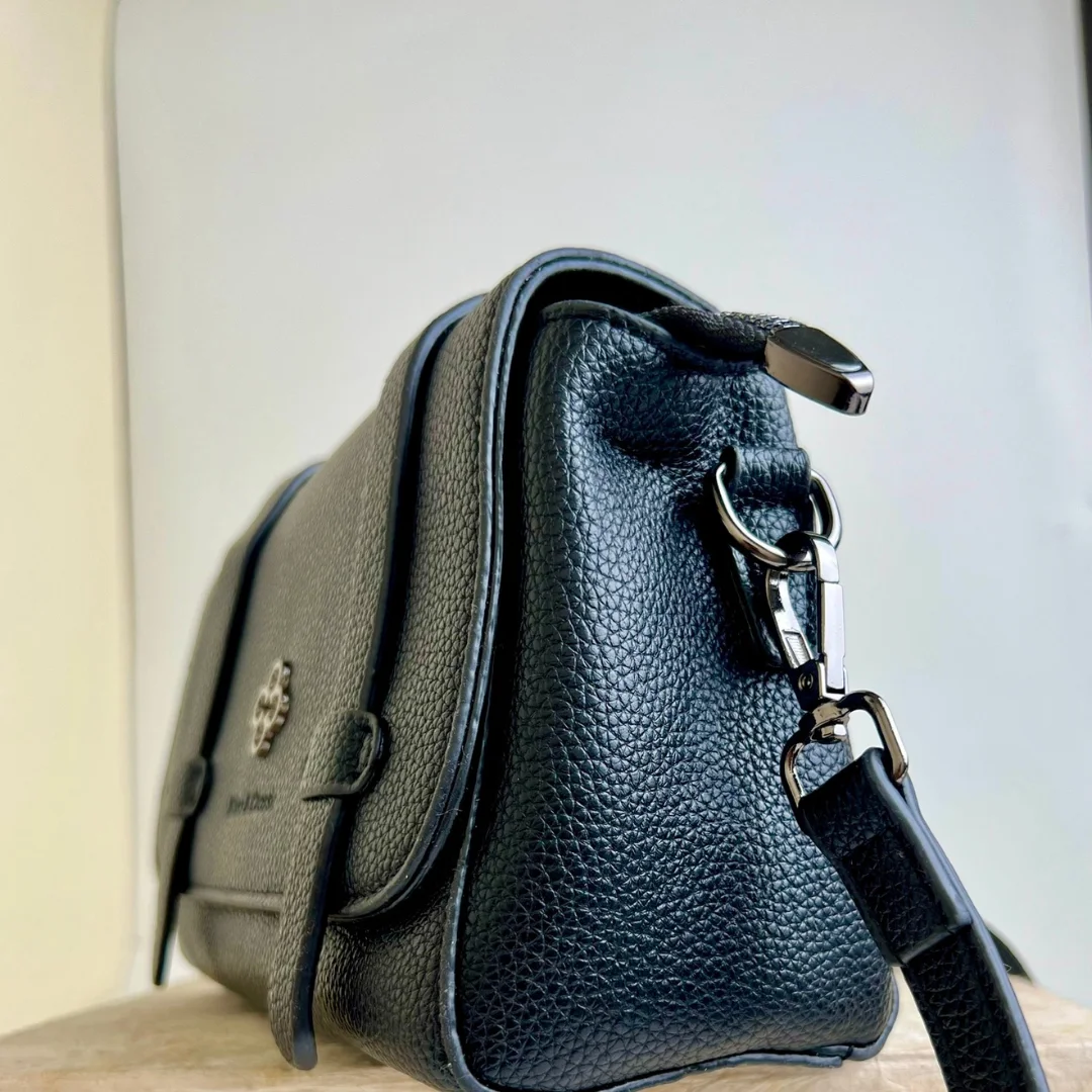 Elevate your style with the Midnight Ivy, a sleek and sophisticated crossbody bag designed for modern elegance. Crafted from premium textured leather, this bag features a minimalist design with a classic black finish, making it the perfect companion for any occasion—from day to night.