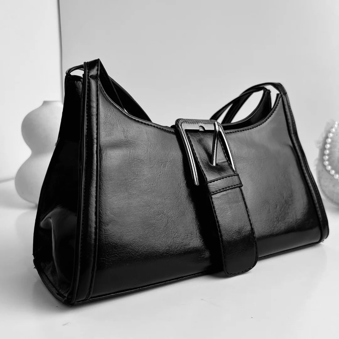 Noir Buckle Shoulder Bag